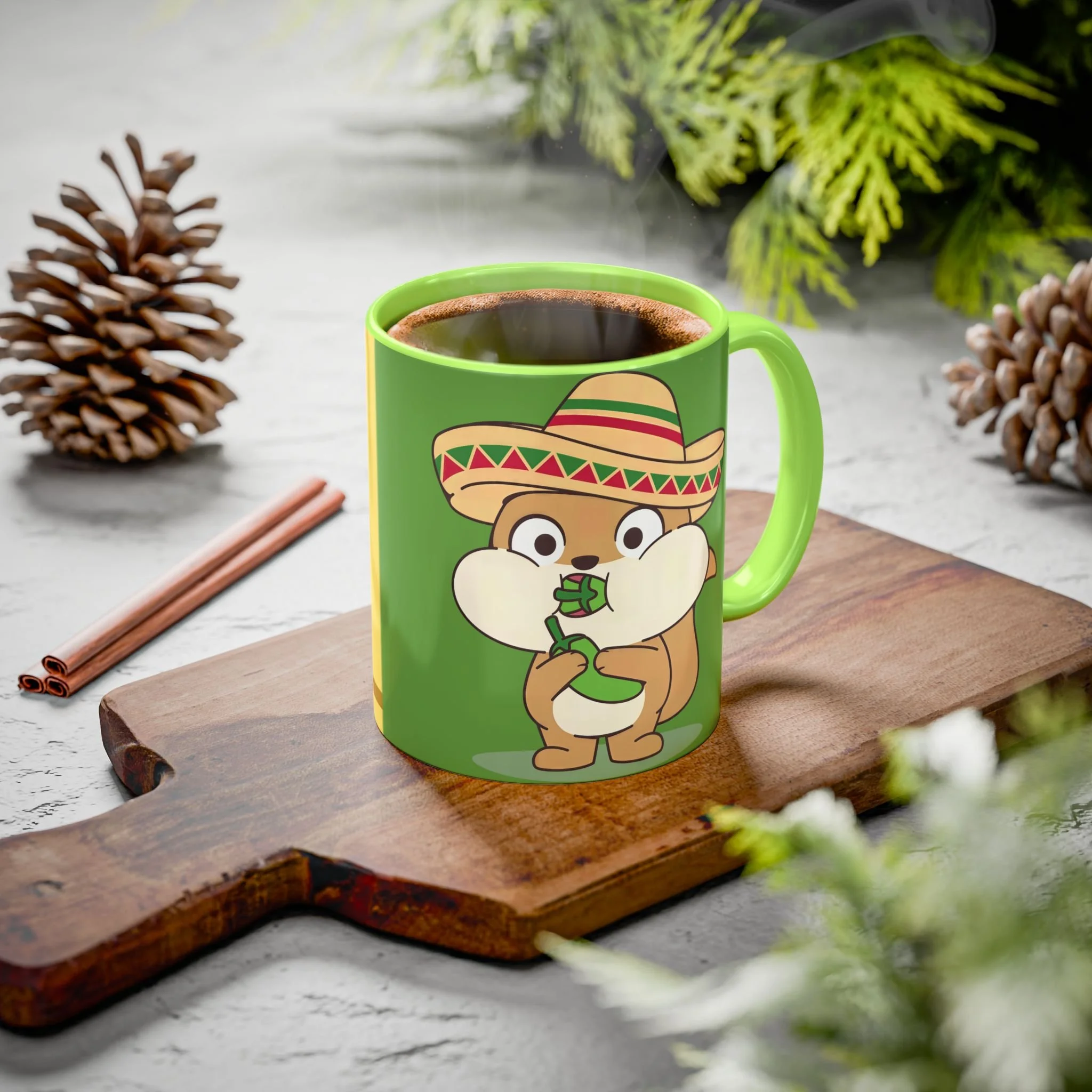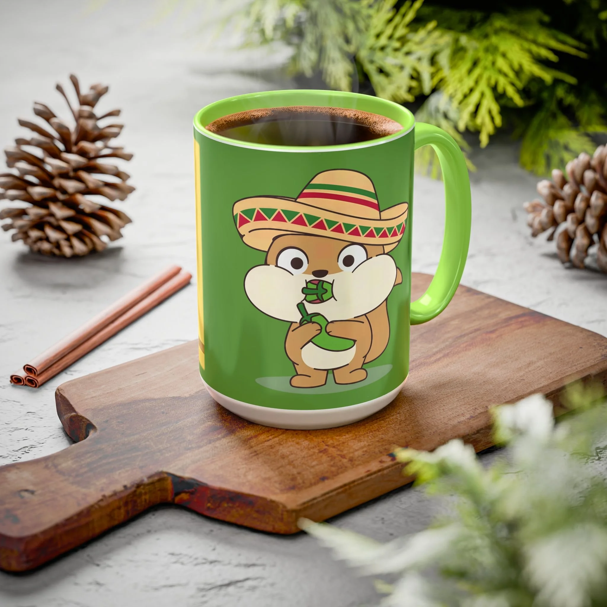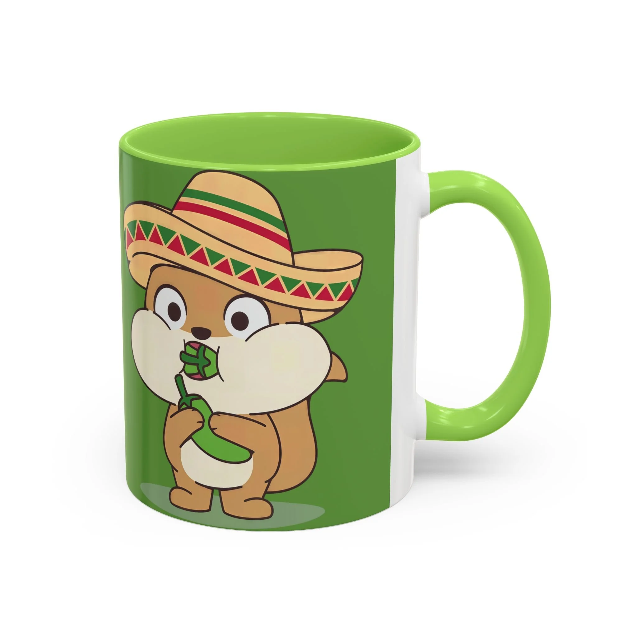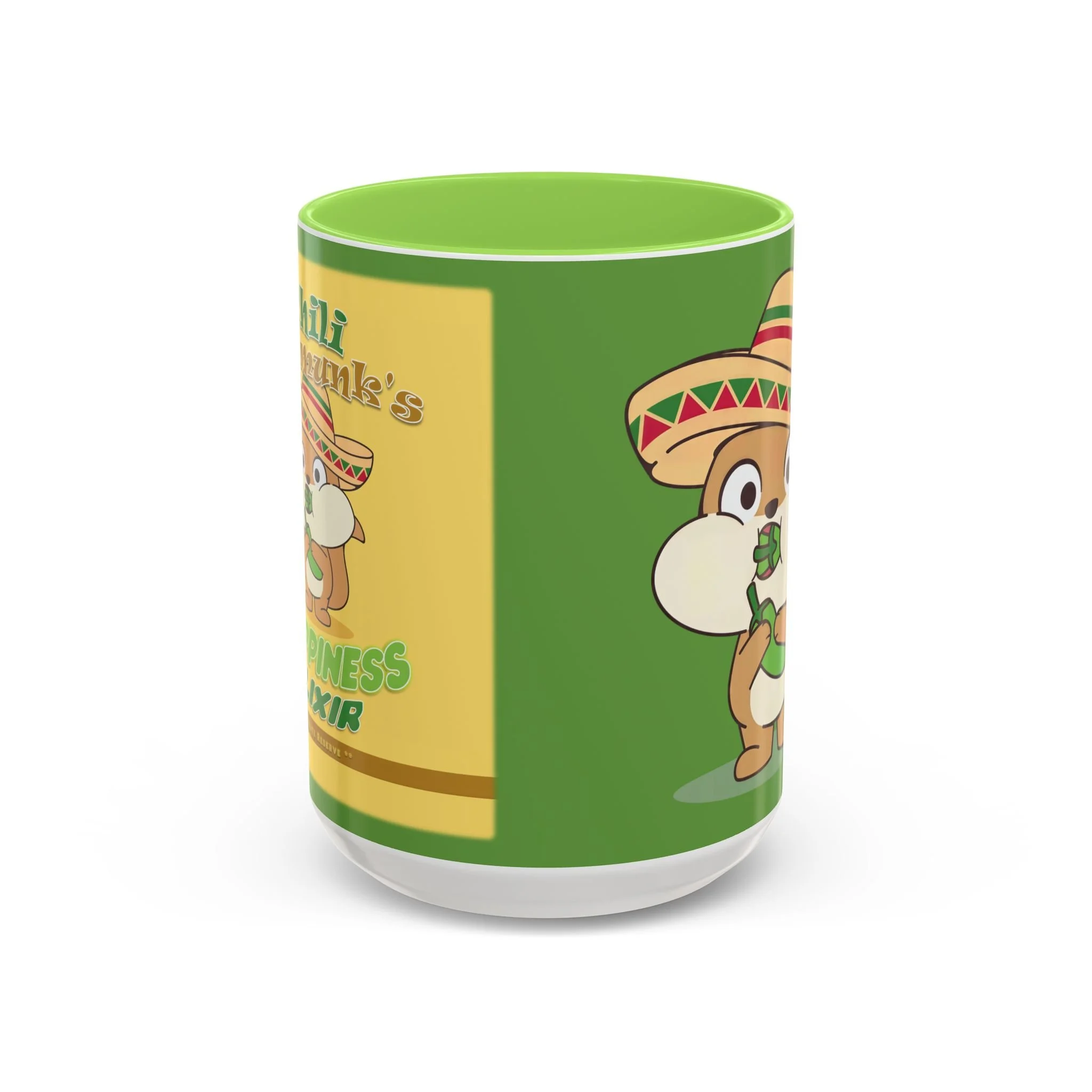 Meet your new favorite morning companion, the "Chili Chipmunk's Happiness Elixir" ceramic mug. This quality mug has full "Chili Chipmunk's Happiness Elixir" graphics on the back with the absolutely adorable "Chili Chipmunk" oversized character on the front!! . Made with white ceramic and sporting a sleek glossy finish with eye-catching vibrant color, this mug is a joy to both to use and to look at. The ergonomic C-shaped handle provides a comfortable grip, while the lead and BPA-free construction guarantee peace of mind with every sip.